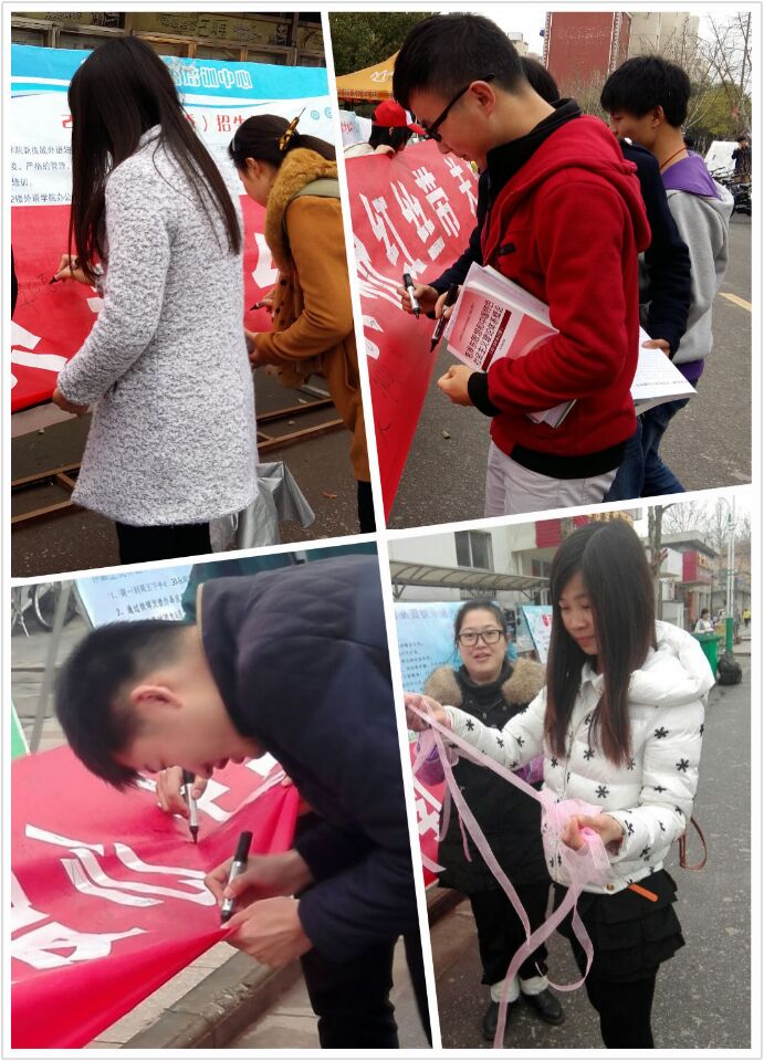 3月19日中午,“和美芜湖”2015年大学生志愿服务暨安徽工程大学第三季“团百花”学雷锋志愿服务项目——管理工程学院“白兰地”团队在学校食堂门口开展了以“传递爱心,关爱乳房,关爱自己”为主题的志愿活动。