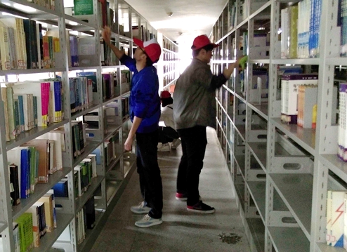 在班长和团支书的带领下,根据图书馆老师的安排,同学们对二线藏书库进行了认真的打扫和整理。劳动过程中大家精神饱满,秩序井然,经过大家的共同努力,书库地面变得更干净了,书架也更整齐美观了,读者可以在里面更加舒适地查找书籍、获取知识。