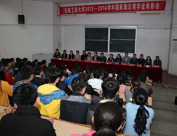 表彰会上,领导、老师为获奖学生代表进行了颁奖。获奖学生代表、来自电气工程学院电子121班刘婷婷同学和纺织服装学院服表131班郁力侠同学分别发言,分享了她们的成长经历和获奖感受。来自机械与汽车工程学院金材131班尤传存同学介绍了自己作为班干,虽能获得国家励志奖学金,却主动把受助的机会留给他人的经历。他的发言受到了领导、老师和同学的一致好评。