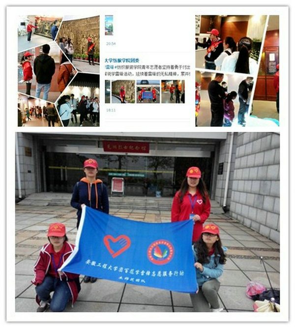 纺服学院“木棉花”烈士纪念馆义务解说活动因缅怀革命历史,有利于增强人民的爱国情怀,获评校第二季“团百花”学雷锋志愿服务活动一类项目以及芜湖市“和美芜湖”2015年大学生志愿服务项目大赛银奖。多年来志愿服务队的同学们一直坚守义务解说阵地,得到了烈士纪念馆的高度赞扬。