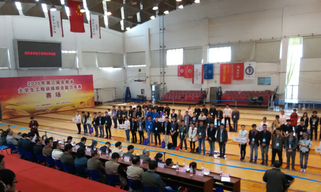 4月12日下午,2015年安徽省第三届工程训练综合能力竞赛在合肥工业大学落下帷幕。我校参赛的三支代表队在竞赛中均获得佳绩:张超、闵文君、刁吉祥同学组成的代表队(“S”形赛道)荣获一等奖,李才波、刘磊、张德慧同学组成的代表队(“8”形赛道)荣获一等奖,许威、罗平安、王森同学组成的代表队(“S”形赛道)荣获二等奖。其中获得一等奖的两支队将代表安徽省赛区参加第四届全国大学生工程训练综合能力竞赛决赛。