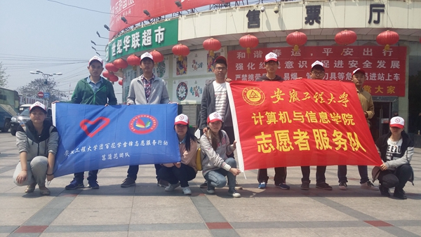 为发扬“奉献、友爱、互助、进步”的志愿者精神,弘扬社会和谐互助的新风尚,计算机与信息学院“菖蒲花”团队于4月12日在芜湖汽车站开展了“菖蒲花”志愿服务活动。