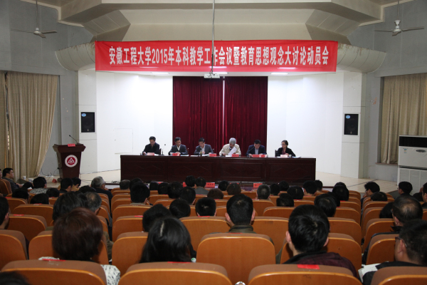 4月18日,我校隆重召开2015年本科教学工作暨教育思想观念大讨论动员会议。学校党政领导陈其工、刘宁、叶常林、汪奇燕、李震、苏国红、郭兴众出席大会,全体处级干部、正高级职称人员、基层教学组织负责人、教学秘书和学生代表等参加会议。大会分为三个阶段举行。