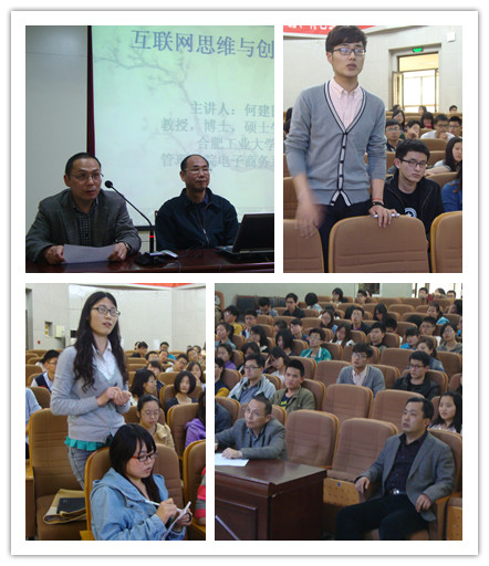 4月23日下午,合肥工业大学管理学院电子商务系主任何建民教授应管理工程学院邀请,在学术报告厅作题为《互联网思维与创意营销》的学术报告。报告会由管理工程学院院长王忠群主持,副书记、副院长何朝林出席会议,近200名师生聆听了报告。