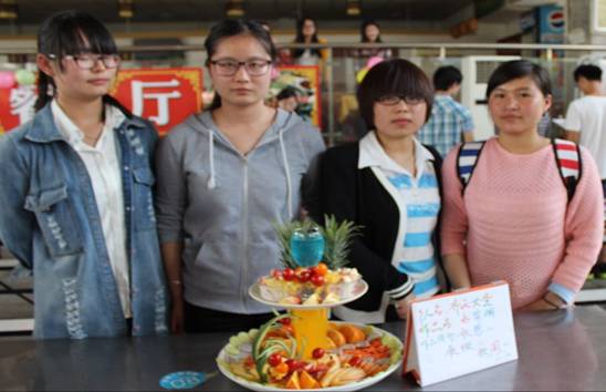 为了丰富大学生的课余生活,增强同学之间的友谊,激发同学们动手、动脑的能力,管理工程学院于4月25日在一食堂举办蔬果拼盘大赛。