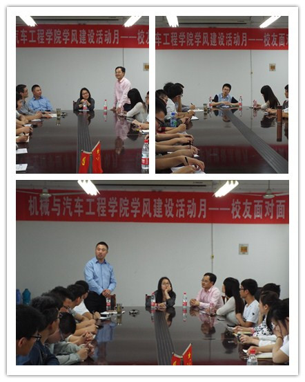为迎接学校庆祝建校80周年,推动学风建设,4月30日,机械与汽车工程学院举办以大学学习与职业发展为主题的校友面对面活动。活动邀请了我校2005届机制专业毕业生李桂东和杨必胜,2005届材料专业毕业生张如炳,2011届机制专业毕业生朱小汀。学生处处长张开炳,学院党委书记邓英扣、党委副书记周怡等受邀参加了活动。活动分两场进行。