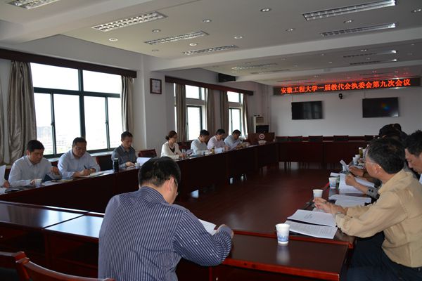 4月30日下午学校在行政楼1121会议室召开校一届教代会执委会第9次会议,会议听取讨论了关于《安徽工程大学国际工程师学院建设初步方案》、《入驻芜湖国家级广告产业园初步方案》等学校重点工作,讨论通过了“校庆纪念日”、教职工定向商品房建设等涉及学校建设发展和教职工切实利益的相关事项。校党委副书记、校教代会执委会主任苏国红,校教代会执委会副主任、工会主席王河,校教代会执委会副主任徐建平等17位教代会执委出席了会议。校领导李震、郭兴众出席,相关职能部门负责人列席会议。会议由苏国红主持。