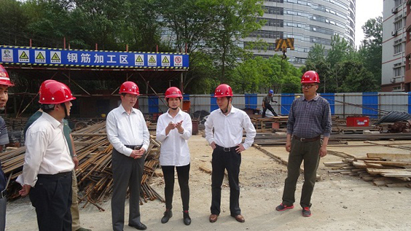 2015年5月7日,校长刘宁、副校长郭兴众在总务处相关人员陪同下,实地调研了学校重点建设工程——教学实验楼C座和图书综合楼。