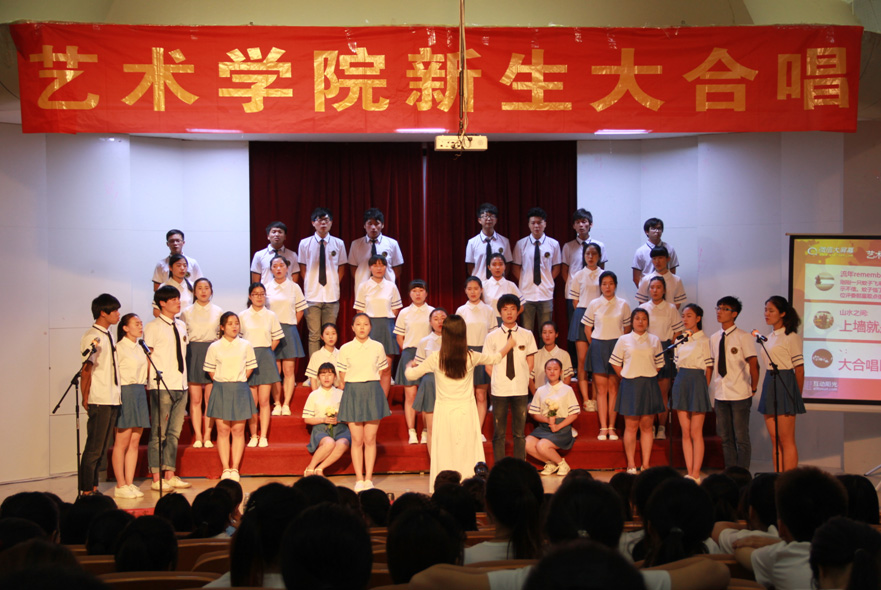 一年级15个班级的同学们以高昂的热情、嘹亮的歌声、蓬勃的朝气为观众们带来了一场视听盛宴。洋溢青春热情和奋斗精神的《奔跑》,展示对梦想不断追求决心的《仰望星空》、《高飞》,表达深切爱国之情的《国家》,歌颂友谊深情的《一生有你》、《相亲相爱》……同学们以饱满的精神面貌唱响热血青春,歌声或婉转,或激扬,或振奋,或高亢,整个现场气氛活跃,掌声不断。