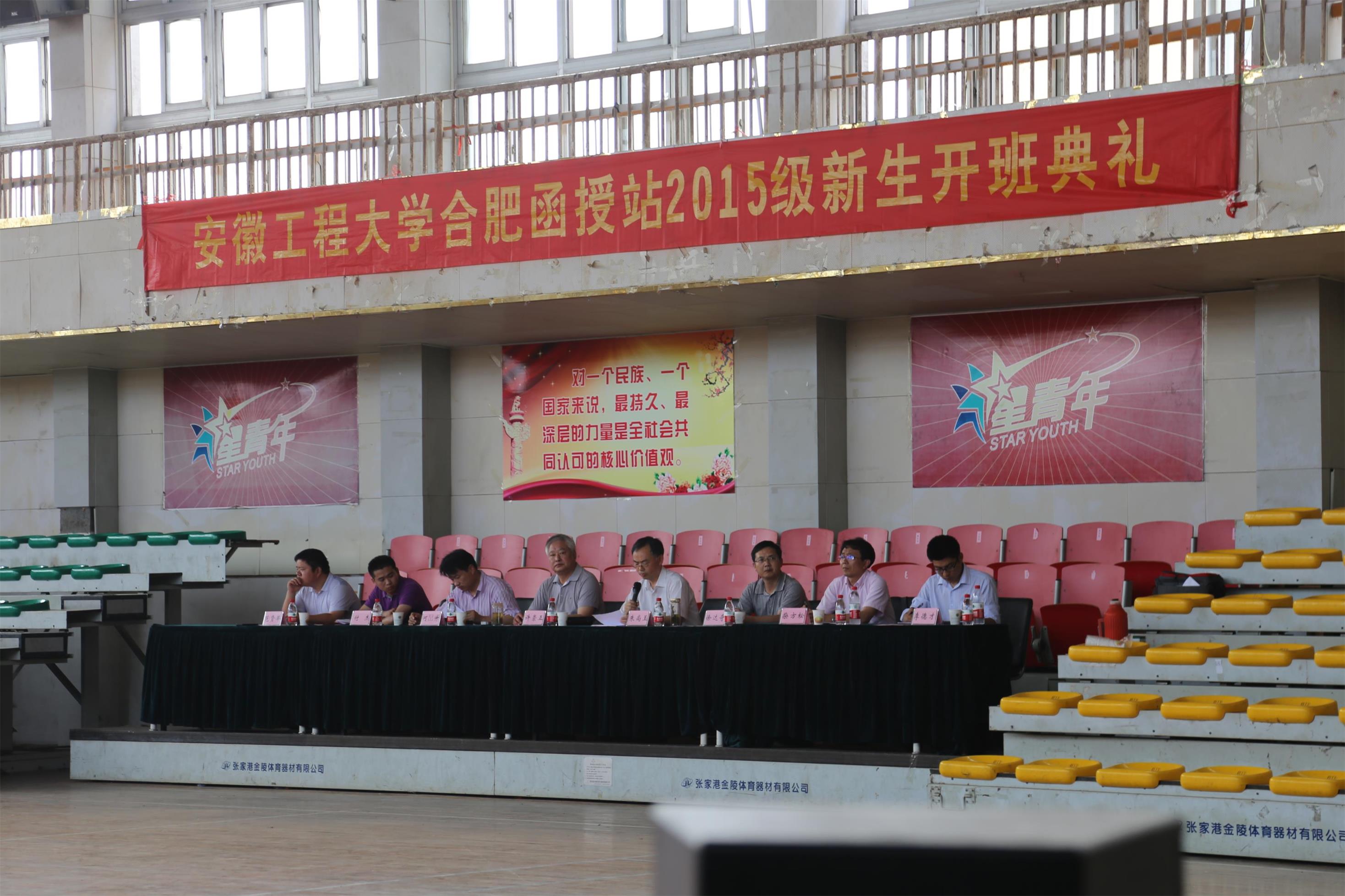 5月31日,我校在安徽绿海商务学院举行2015级合肥函授站新生开学典礼。安徽绿海商务学院院长许崇正、院长助理何旵升,我校继续教育学院、建筑工程学院负责人出席,我校相关工作人员和教师代表,合肥函授站2015级新生参加了典礼。典礼仪式由何旵升主持。