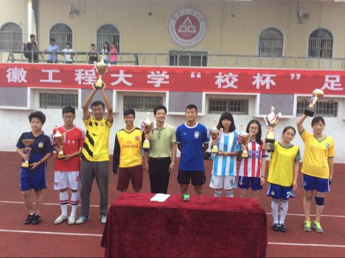 闭幕式上,校体育运动委员会副主任、体育学院党总支书记文才新莅临现场,热情地向每个获奖运动队颁发了精致的奖杯并亲切地送上了祝福和勉励。至此,由体育学院与校团委共同主办的2015年安徽工程大学“校杯”足球赛圆满落幕。在接下来的本周五下午,由体育学院与校工会共同组织的首届“足协杯”教工男子五人制足球赛也将激情上演,势必能进一步增强我校教职工身体素质,并将我校足球氛围推向新的高潮。