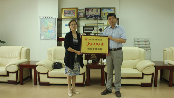最后,苏国红代表安徽工程大学向合肥市第八中学授予“安徽工程大学优质生源基地”牌匾,并与王建明校长签订了“安徽工程大学与合肥市第八中学合作协议”。签约授牌仪式后,苏国红一行还参观了合肥市八中的教学成果展。