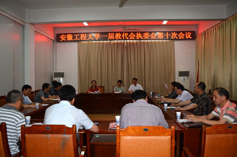 6月10日,学校在工会会议室召开一届教代会执委会第十次会议。会议听取讨论了关于《关于安徽工程大学机电学院转设情况的报告》、《关于校训修改、校旗设计情况的报告》等学校重点工作,讨论通过了关于调整一届“两代会”提案委员会组成的建议。校党委副书记、校教代会执委会主任苏国红,在校的14位教代会执委出席了会议。校领导汪奇燕、李震以及相关职能部门负责人列席会议。会议由苏国红主持。
