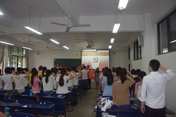 6月17日下午,外国语学院举行学生党员入党宣誓暨重温入党誓词仪式。院党委副书记谈丽华、学生党支部委员及全体学生党员出席了仪式。仪式由学生党支部书记李飞主持。
