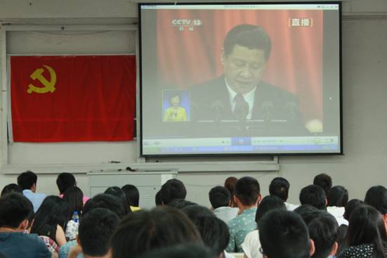 在入党宣誓前,全体党员首先观看了“三严三实”的学习视频。视频着重阐述了“三严三实”的丰富内涵和重大意义,鲜明深刻地指出:“三严三实”是党员干部的修身之本、为政之道、成事之要,它丰富了管党治党的思想理念,为加强党员干部党性修养、深入推进新形势下党的建设提供了重要遵循。部分学生党员在发言时提出:“三严三实”是对全体党员的要求,作为一名学生党员,做到“三严三实”就是要认真学习,精于专业,以自己的实际行动营造良好的学风,为其他同学树立榜样。