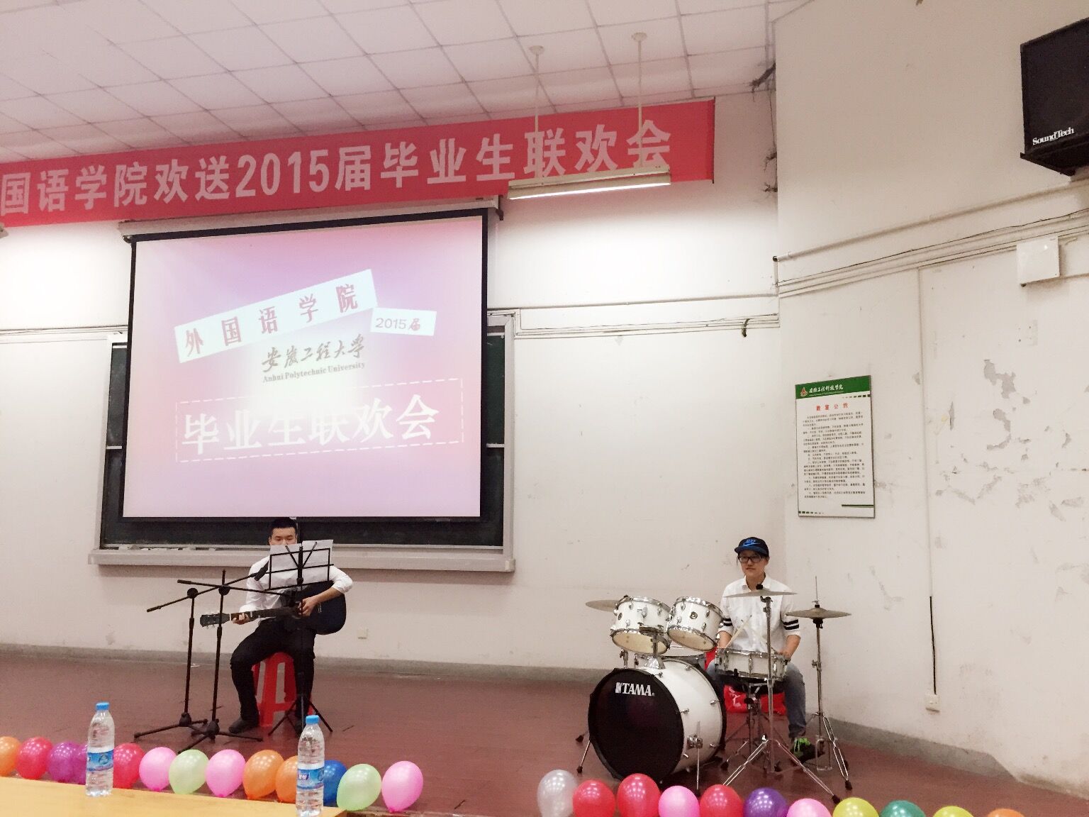“朋友一生一起走,那些日子不会有,一句话,一辈子,一生情,一杯酒”英语131(升)的一首合唱《朋友》拉开了联欢会序幕,字里行间透漏着不舍与追忆。整场联欢既有外院学生向老师同学的汇报演出,如原汁原味的英语戏剧表演、《Sugar》、《Ghost Town》等英文歌曲和《手纸》日文版歌曲的深情歌唱,也有架子鼓和吉他天衣无缝合作精彩演奏BEYOND经典曲目《海阔天空》,以及模仿东北口音的小品《公交车上》,其别具匠心的情节,幽默的表演方式,颇为专业的演技,让在场的观众笑声不断的同时展现了外院学子的兼容并蓄、多才多艺。此外,作为学弟学妹对学长学姐的留恋和祝福,日语131班的周虹越同学还带领街舞协会成员自告奋勇为联欢会带来街舞《Dancing》,其激情四射而又精彩的表演,让即将离开母校的毕业生们大饱眼球同时又感动不已。联欢会的高潮部分是手语《感恩的心》,毕业生们以深情的歌声和优雅的肢体动作诉说着对恩师培育的感激之情,引发全体毕业生的共鸣,离别气氛充斥整个晚会现场,不少学生流下了不舍的泪水。