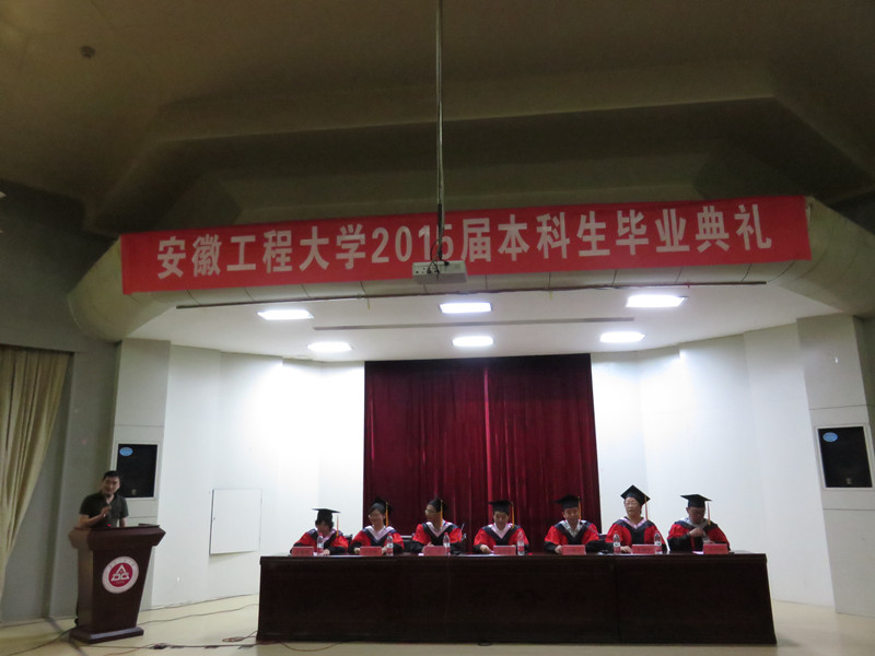 典礼在庄严的国歌中拉开帷幕。刘军宣读了《关于授予2015届本科毕业生学士学位的决定》,章靖平宣读了《关于表彰2015年安徽省普通高等学校品学兼优毕业生和2015届优秀毕业生的决定》。随后,毕业生依次登场,主席台就坐的领导为毕业生颁发毕业证书和学位证书并扶正流苏,并为获得表彰的毕业生颁发奖状证书。