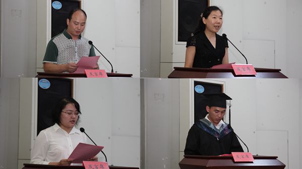 毕业典礼在庄严的国歌声中正式开始。院办公室主任方玖胜首先宣读了关于授予2015届毕业生学士学位的决定。周鸣争为每一位毕业生扶正流苏。院团委副书记马晓琼宣读了计算机与信息学院2015届优秀毕业生和安徽省2015年品学兼优毕业生的表彰名单,主席台上的领导老师为受表彰的毕业生颁奖。