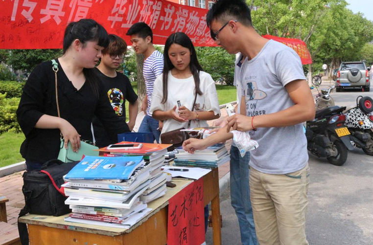 为使图书价值得到充分利用,营造“青春接力棒,书香传真情”的浓厚校园文化氛围,艺术学院于6月18日下午在三食堂门前开展“捐赠图书,留爱母校”的毕业生离校赠书活动。