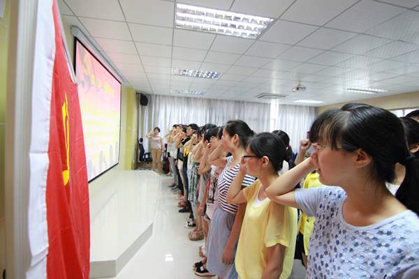仪式在庄严的国歌声中拉开帷幕。吴敏对此次培训情况作了简要的回顾和总结,并宣布优秀学员名单。随后,42名预备党员整齐肃立,举起右手,面向党旗,神情庄重,在吴敏的领誓下庄严宣誓。