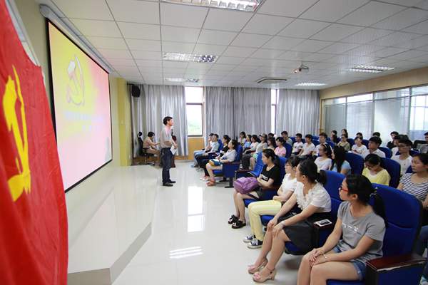 在七·一建党节来临之际,为庆祝中国共产党成立94周年,6月29日下午,数理学院党委学生党支部全体党员在数理学院金融工程实验室举行第五期党员培训班结业典礼暨新党员宣誓仪式。数理学院党委副书记水心宝出席仪式,本次活动由学生数学党支部书记吴敏主持。