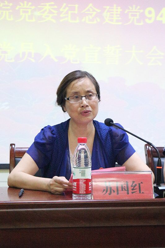 苏国红指出,入党宣誓是对建党94周年的隆重纪念,也是对全体党员的一次深刻教育。近年来,学校在人才培养、科学研究、社会服务、文化传承创新等方面均取得了显著的成绩,在国内、省内的影响力逐步提升。成绩的取得得益于校党委的坚强领导,是全体师生员工特别是全校各级党组织、全体共产党员共同努力的结果。她希望全体党员,一是要牢记入党誓词,努力去践行自己对党表达的决心。二是要坚定理想信念,树立远大的共产主义理想和坚定的信念,不为眼前的各种复杂现象所困惑。三是要珍惜荣誉、担起责任,按照“五带头”的要求,“诚实做人、踏实做事、扎实做学问”,真正做到“干在实处、走在前列”,成为身边同学学习的标杆和榜样,用实实在在的行动和成绩帮助同学、信服同学、带动同学。她强调,一个党员就是一面旗帜,全体党员都要牢记责任和承诺,紧紧围绕学校发展目标任务,确立成长成才目标,共同为实现“中国梦”、“强校梦”、“成才梦”而不懈奋斗。
