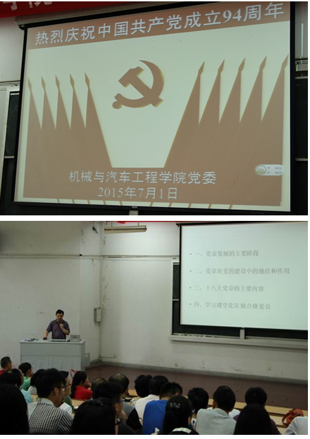 7月1日下午,机械与汽车工程学院在二教报告厅召开庆祝建党94周年活动。学院党委委员、党支部书记和全体师生党员参加了庆祝活动,庆祝活动由学院党委书记邓英扣主持。