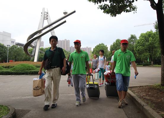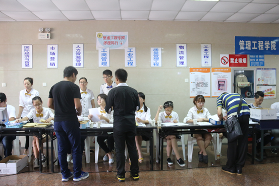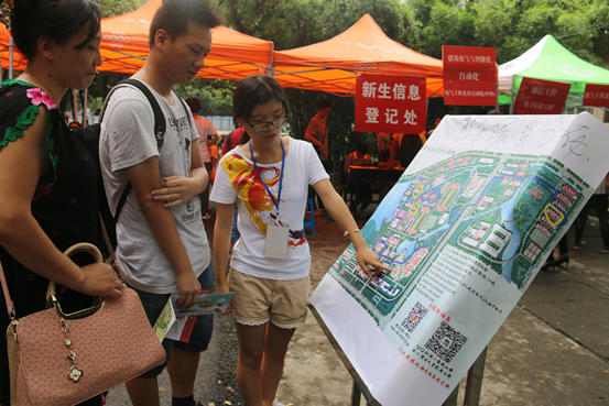 走出新生签到处,不要担心在偌大的校园中找不到方向,我们的志愿者无处不在。瞧,可爱的志愿者们在为你导航,当然也会有专门的志愿者送你回宿舍哦!