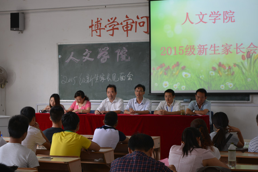 为加强与新生家长沟通联络,增进彼此了解信任,9月5日下午,学院在2教202教室召开2015级新生家长座谈会。院党委书记伊长文、副院长刘军、副书记金艾裙、团委副书记黄江胜、行管系主任赵宏斌、法学系主任杜蓓蕾、2015级新生辅导员梅琼以及部分家长参加了会议。座谈会上,刘军详细介绍了学院的发展历史、专业设置、师资力量、办学水平及学科建设方面的新举措、新成绩,各系主任也和家长进行了深入互动,耐心细致地解答了家长们提出的各种问题,切实做到让家长满意、放心。
