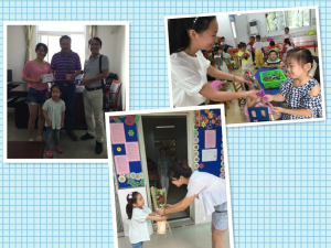 为了感谢老师们的辛勤付出,附属幼儿园的小朋友们在教师节来临之际,用自己平日在园内所学的手工知识,在幼儿园家委会和大学生哥哥姐姐的协助下,为自己亲爱的老师们制作了一个个小巧可爱的陶瓷工艺品。小朋友们将自己手中的贺卡、盆景和陶瓷递工艺品送给老师的时候,一句“老师,您辛苦了,节日快乐!”让这些辛勤工作的园丁们充满了感动和喜悦之情。