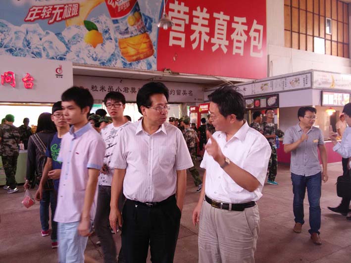 2015年9月14日,省教育厅高校后勤管理中心主任陈鹏一行来我校检查指导学生食堂工作。副校长郭兴众热情接待陈鹏一行,后勤服务集团负责人陪同检查。