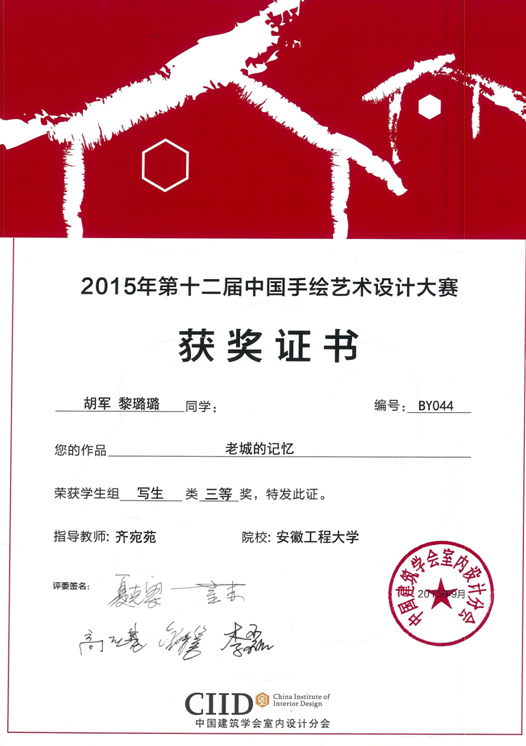 近日,在中国建筑学会室内设计分会主办的“2015年第十二届中国手绘艺术设计大赛”和“2015新人杯全国大学生室内设计竞赛”中,我校艺术学院环境设计专业荣获佳绩。