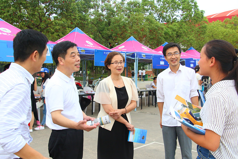 校长刘宁、校党委副书记苏国红来到现场,调研指导学生社团工作,并与新生同学进行了亲切交流。