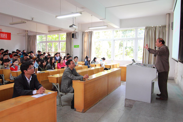 费为银指出,国内许多知名高校的毕业生中最终有50%以上学生读研或出国深造,与名校相比,我校仍存在一定差距。同时,他列举了大量的典型事例深刻阐述了考研的重要意义。他希望同学们在即将到来的考研正式报名中,在选择学校、专业等方面要紧密结合自身实际,量力而行,坚持不懈,争取最好成绩。此外,他就我校研究生招生相关政策与广大同学进行了交流,鼓励广大同学积极报考我校。