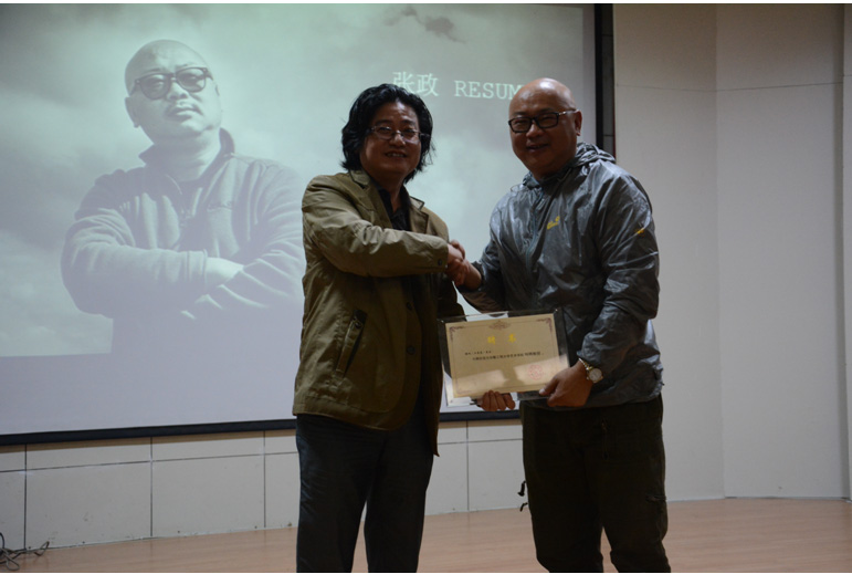 启动仪式还特邀请著名摄影师张政作摄影专业知识报告,为参加大赛的学生提供了专业指导。黄凯向张政先生颁发了特聘教授证书并致辞。他说,学院今后将不断邀请社会知名人士和杰出校友走进校园,和同学们分享他们在专业和事业上的成果和人生感悟。
