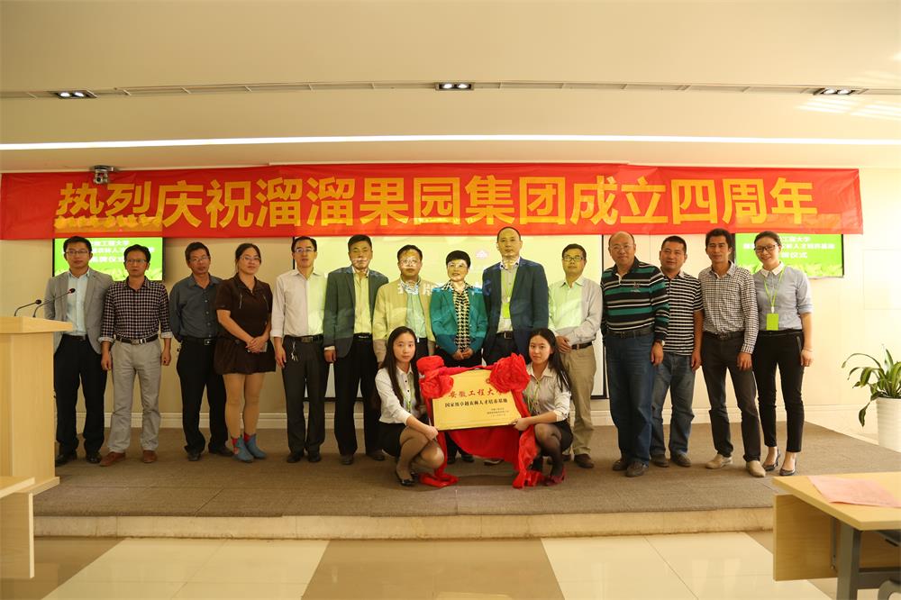 10月18日,国家卓越农林计划安徽工程大学溜溜果园集团人才培养基地揭牌仪式暨溜溜果园集团成立四周年纪念活动在繁昌县溜溜果园集团总部举行。生化学院副院长陶玉贵、食品工程系主任季长路、国家卓越农林计划负责人蔡为荣以及食品工程系郭玉宝博士代表学院参加了揭牌仪式,参加揭牌仪式还有繁昌县常务副县长殷琼、溜溜果园集团总裁杨帆、繁昌县开发区党工委书记范新江、繁昌县开发区办公室副主任李红以及溜溜果园集团全体中层干部。