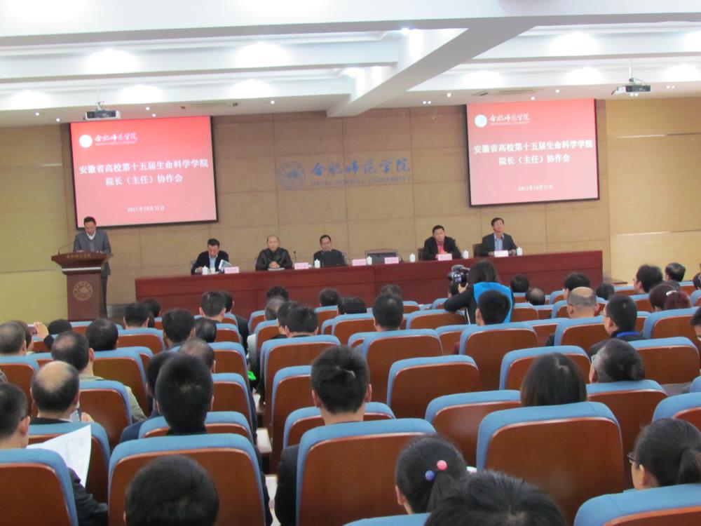 10月31日至11月1日,安徽省高校第十五届生命科学学院院长(系主任)协作会在合肥师范学院隆重召开。我校生化学院副院长薛正莲、陶玉贵以及相关专业系主任、部分教师参加了本次会议。合肥师范学院校长李进华在会议上致辞,会议由合肥师范学院生命科学学院院长徐忠东主持。