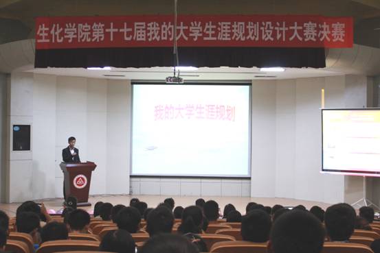 共有12名同学入围决赛,比赛分为两个环节,第一环节是选手们按照顺序并结合PPT分别从自我分析、目标分析等方面阐述自己的大学生涯规划。第二环节是评委针对选手们的汇报演讲提出相关问题与指导建议。