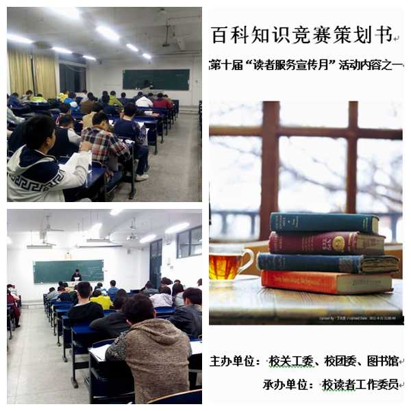 我校百科知识竞赛由校关工委、校团委和校图书馆主办,校学生读者工作委员会承办,之前已圆满完成三届,并在校内得到广大学生的积极响应。