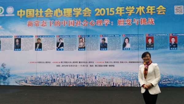 10月31日至11月1日,由中国社会心理学会主办的中国社会心理学会2015年学术年会在第三军医大学召开。来自全国30多个省、市、自治区,约500名社会心理学领域的专家、学者和代表参加此次大会,我校人文学院社会工作专业金艾裙教授作为中国社会心理学会第八届理事,与安徽省社会心理学会代表团一同参加会议。