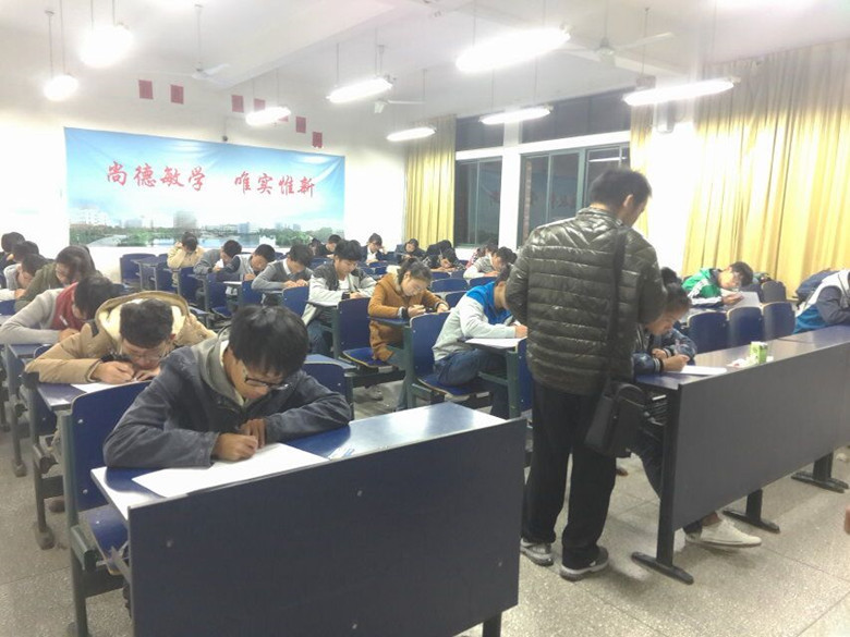 本次知识竞赛考试采取闭卷考试的形式,分14个考场同时进行。试题分为选择题、填空题、判断题、简答题、论述题共五个模块,全面细致地考察了新生对我校《学生手册》的掌握程度,着重考查安全制度和规定。考试现场,监考人员恪守职责,严肃考场纪律,毫不懈怠;考生认真作答,秩序井然,表现出良好的精神风貌。