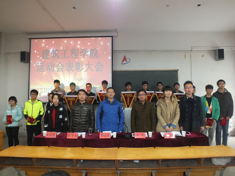 11月11日下午,建筑工程学院2015年运动会表彰会在4教111举行。学院党委书记徐达奇、副书记李烨、辅导员及校第34届运动会暨院第一届运动会获奖运动员代表、学院团委学生会全体人员、学生团体代表等参加会议。会议由辅导员苏伟刚主持。