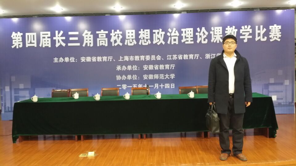 11月13日至14日,由安徽省教育厅、上海市教育委员会、江苏省教育厅、浙江省教育厅共同主办,安徽省教育厅承办的第四届长三角高校思想政治理论课教学比赛在安徽师范大学落幕。根据比赛要求,我校思政部尚子翔老师与其他高校7位老师一起代表安徽省参加了此次比赛,最终荣获三等奖。