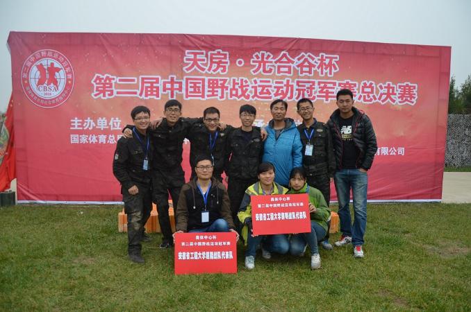 我校作为国内最早开展野战运动的高校之一,在校领导的重视下组建了安徽工程大学超能战队(男女混合组)和安徽工程大学黎明战队(男子组)。经过4个多月的集训,我校代表队从安徽赛区的层层选拔中脱颖而出,并代表安徽省参加了总决赛。经过两天的激烈决赛,我校运动员在教练员张振霖、闫林和薛保红三位教练的认真组织下,取得了三个冠军、一个亚军和三个季军的优异成绩,其中在男子单人赛中,我校运动员技压群雄,包揽了前三名,体现了良好的技战术水平,生化学院周子明同学获得了“枪王”荣誉称号。黎明战队以团体总分第一的好成绩获得本次大赛的金奖,超能战队以团体总分第三的好成绩获得本次大赛的铜奖。同时,我校还荣获了最佳组织奖和道德风尚奖,受到了国家体育总局领导和其他参赛单位的一致称赞,扩大了安徽工程大学在野战运动领域的影响力。