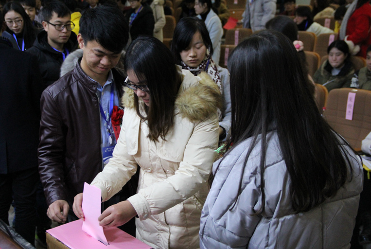 冉昆玉代表校团委致辞。他希望艺术学院共青团组织和团员青年以这次团学代会为新的起点,加强思想引领和理论武装,强化革新意识与责任担当,努力把自身建设得更加充满活力,更加坚强有力;要切实履行好“凝聚青年、服务大局、当好桥梁和团要管团”四个维度的职能,切实提升共青团组织在学院育人工作中的支撑度和贡献率;要自觉以“三严三实”的标准严格要求自己,努力把学院共青团组织建设成为线下线上都找得到,学习生活都能靠得住,思想精神都离不开的青年群众组织。