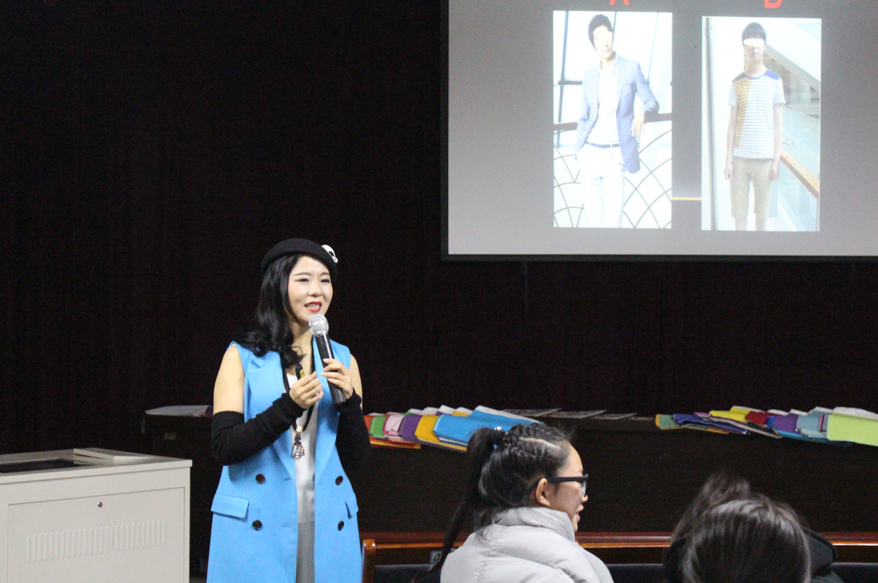 韩会玲首先与同学们进行游戏互动与问答,引起了同学们浓厚的兴趣。接着她从形象价值、形象构成、形象管理三个方面简要说明了形象的意义。她为同学们讲述了形象的显性因素、隐性因素、及形象在年龄、社会层次、品味审美、多区域文化修养的差别。韩会玲提到,在这个快节奏的时代里,所有人都处于一种待价而沽的被动状态。形象作为人力资源的第三大资源,与人的体力和智力资源并举是构成这个时代人力资源的最新结构。她引用著名形象设计师西蔓名言“你的形象正在告诉人们关于你的一切,你穿的不仅是衣服,而是关乎你的价值”。同时教导大学生应注重个人形象管理,从视觉、社交、精神三个方面为自己定位,为自己的成功有选择地塑造着装形象。随后一一列举了职场、社交、休闲三个场合的着装让大家学习。