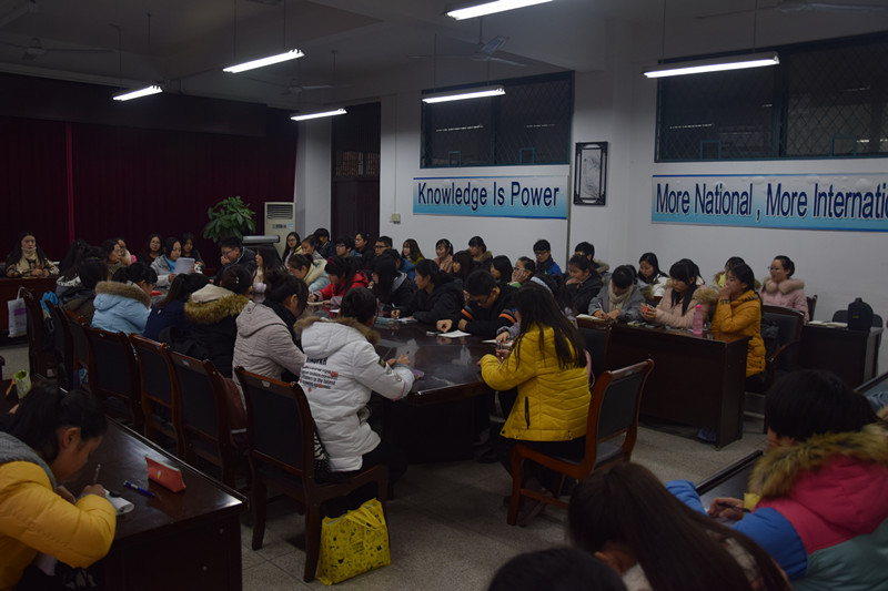 为加强学院院风学风建设,响应学校 “12·5要爱我”心理健康活动节,充分发挥朋辈教育的作用,12月10日,外国语学院召开以“关注心理、关爱室友”为主题的寝室文化建设暨心理健康教育讨论会。院党委副书记谈丽华,院团委副书记余本祺,院学生会生活部成员、心理部成员、各班班长、心理委员以及全体寝室长参加了此次会议。会议由院学生会生活部部长唐瑭主持。