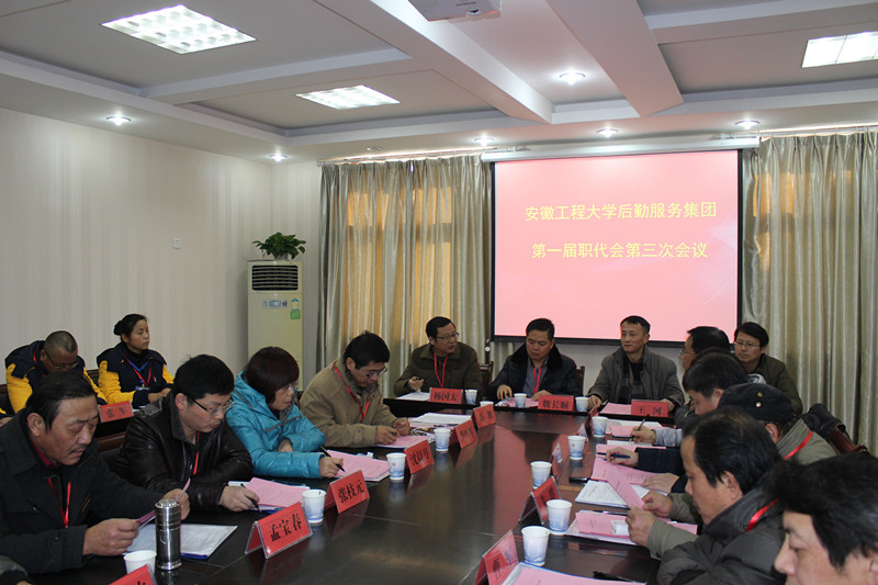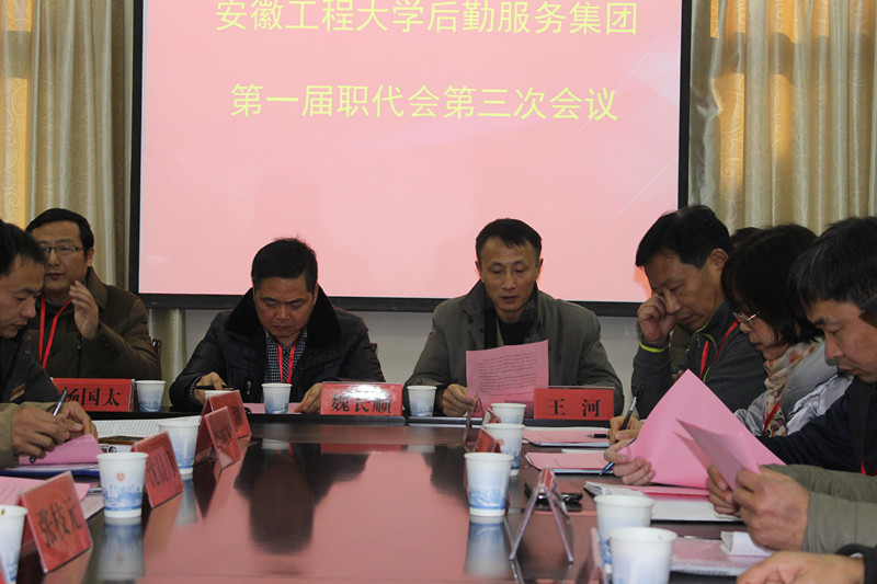 按照会议议程,全体代表举手表决,一致通过了第一届职代会执委会增补名单和《安徽工程大学后勤服务集团积分管理办法》等会议文件。