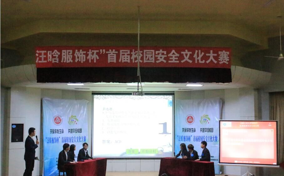 关爱你我生命,创建平安校园。12月12日,由校团委、保卫处、后勤服务集团主办,校学生宿舍管理委员会和伙食管理委员会承办,各学院学生会协办的“汪晗服饰杯”首届校园安全文化大赛决赛在学术报告厅成功举行。后勤服务集团总经理魏长顺等活动主办单位相关领导及各学生组织观看了本次比赛。