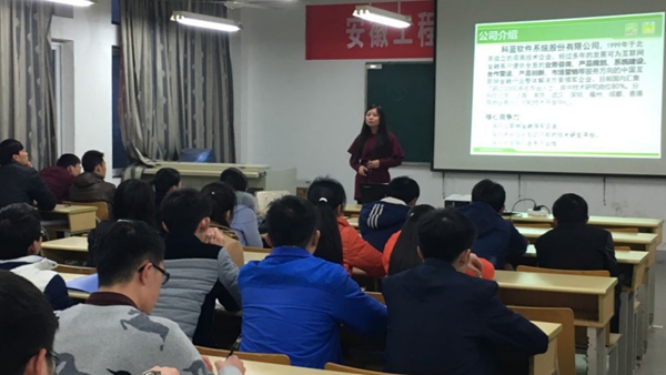 3月3日、4日下午,安徽瑞信软件、北京科蓝软件系统有限公司、安徽中青信息科技有限公司分别在计算机与信息学院B座508举办了专场招聘会,招聘的岗位有金融业务分析师、JAVA初级开发工程师等。